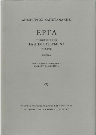«Υπήρξαν γενιές που, μετά τον πόλεμο, μυήθηκαν στη σκέψη του Δημητρίου Καπετανάκη», γράφει στον Πρόλογο του Α΄ Τόμου των απάντων του συγγραφέα η Εμμανουέλα Κάντζια. Ερευνήτρια, συγκριτολόγος ευρωπαϊκής λογοτεχνίας, έβγαλε από τα αρχεία και επιμελήθηκε τη σημαντική αυτή έκδοση των Δημοσιευμένων (Τόμος Πρώτος) και των Αδημοσίευτων (Τόμος Δεύτερος, ετοιμάζεται) έργων αυτού του «μυητή» ποιητή και δοκιμιογράφου, στον συντομότατο βίο του οποίου (Σμύρνη 1912 – Λονδίνο 1944) γονιμοποιήθηκαν πλούσιες και ώριμες αισθητικές, στοχαστικές και κριτικές μελέτες καλύπτοντας μεγάλο φάσμα γνωστικών πεδίων. Οι μεταπολεμικοί ωστόσο λατρευτικοί αναγνώστες του γνώριζαν ελάχιστες από αυτές, κυρίως τα δοκίμιά του Έρως και Χρόνος και Μυθολογία του Ωραίου. Ο ίδιος και το έργο του ποτέ δεν έφτασαν στο ευρύτερο κοινό. Αινιγματικός και αταξινόμητος, άνθρωπος των γραμμάτων και της τέχνης στη θρυλική δεκαετία του 1930, ο Δημήτριος Καπετανάκης, από τα φοιτητικά του χρόνια στην Αθήνα είχε συνδεθεί φιλικά με τον δάσκαλό του Παναγιώτη Κανελλόπουλο και με τον κύκλο του Ιωάννη Συκουτρή, ενώ αργότερα, στη Χαϊδελβέργη, μαθήτευσε πλάι στον Καρλ Γιάσπερς και γοητεύθηκε από την επιβλητική ποιητική φυσιογνωμία του Στέφαν Γκεόργκε. Η εκτενής Εισαγωγή της επιμελήτριας τον παρακολουθεί στις πνευματικές και ανθρώπινες περιπλανήσεις του ταραγμένου βίου του, έως την καταφυγή του στην Αγγλία το ’39, παραμονές του πολέμου, όπου μέσα στα επόμενα πέντε χρόνια, ώς το θάνατό του, θα αναδειχθεί σε γνήσιο εκφραστή της μοντέρνας αγγλικής ποίησης.