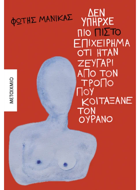 Ο Φώτης Μανίκας γράφει πάνω στα αισθητήρια όργανα των πρωταγωνιστών του. Με µια προσεκτική και αρκετές στιγµές ιλιγγιώδη τριτοπρόσωπη αφήγηση φτάνει κοντά στα όρια για να εξερευνήσει πώς συµβαίνει το «δύο» όταν είναι «ένα» και πώς από «ένα» γίνεται «δύο».