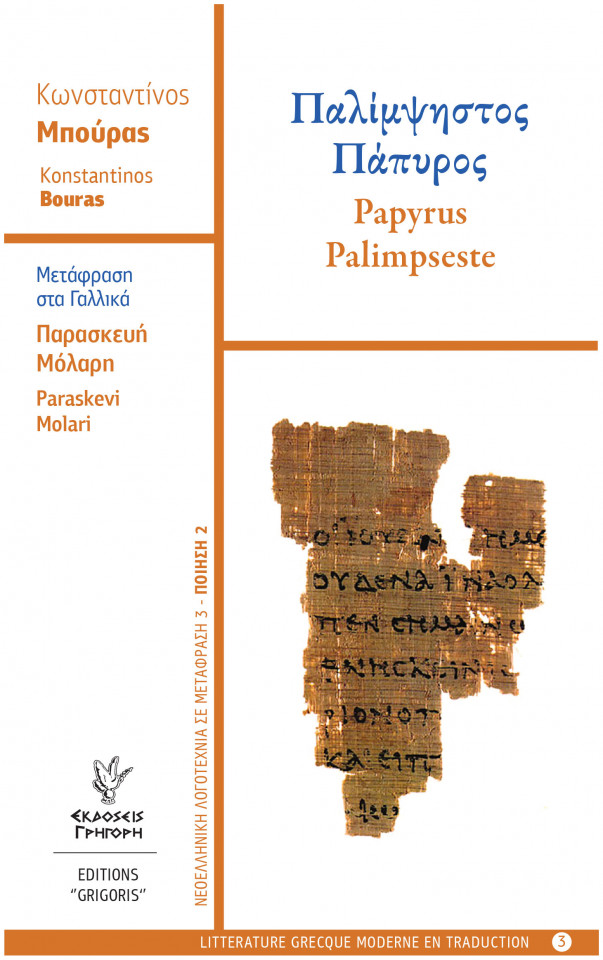 Οι εκδόσεις “Γρηγόρη”, στην υπηρεσία του πανευρωπαϊκού και πανανθρώπινου Πολιτισμού και στη σειρά “Νεοελληνική Λογοτεχνία σε Μετάφραση” μεταφρασμένη στα γαλλικά από σημαντικούς ερευνητές-μεταφραστές κι επιμελημένη από τον Καθηγητή στο Τμήμα Μετάφρασης και Διερμηνείας του Ιονίου Πανεπιστημίου Δημήτρη Φίλια, παρουσιάζει εδώ, σε αυτόν τον ευσύνοπτο τόμο, την συνδημιουργική ανάπλαση από την εκπαιδευτικό-ερευνήτρια-μεταφράστρια Παρασκευή Μόλαρη, κάποιων από τα καλύτερα πρόσφατα ποιήματα του Κωνσταντίνου Μπούρα. Θεματολογία και μορφή, σε αγαστή συνταύτιση με τη ρυθμολογία και την υφολογία, συνθέτουν μία έμπρακτη άσκηση ελληνογαλλικής φιλίας, μία ευτυχισμένη συνάντηση και συνομιλία αυτών των δύο τόσων συγγενικών και φιλικών ως προς τις καταβολές και την εξέλιξή τους πολιτισμών. Η συμβατότητα ελληνικής και γαλλικής γλώσσας φαίνεται στην προσεκτική μελέτη κατ’ αντιπαράστασιν ολοκληρωμένων ποιητικών επιτευγμάτων. Η σύγκριση είναι συντριπτικώς εκπληκτική. Πολλές φορές αναρωτιέται ο επαρκής αναγνώστης ποιο είναι το μετάφρασμα και ποιο το πρωτότυπο. Η γαλλική γλώσσα περισσότερο νοησιαρχικώς δομημένη από την άναρχη ελληνική γλώσσα, όπως διαμορφώθηκε μέσα στους αιώνες απορροφώντας πολυποίκιλες επιρροές και πολύτιμες πολιτισμικές επιδράσεις, είναι από τις πλέον πρόσφορες για τη δημιουργική ανάπλαση του αντιπροσωπευτικού έργου σύγχρονων σημαντικών ποιητών.