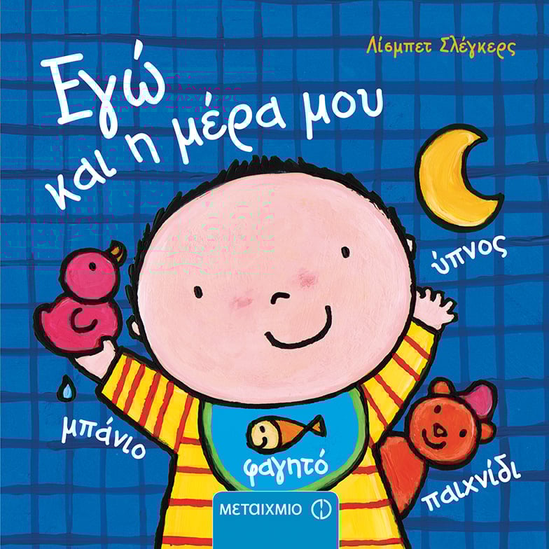 Σήµερα είναι µια όµορφη µέρα! Το πρωί φοράω τη σαλιάρα µου και τρώω µε όρεξη το πρωινό µου. Μετά είναι ώρα για παιχνίδι. Το βράδυ στην µπανιέρα πλένοµαι και παίζω µε το καραβάκι µου. Και γραµµή στο κρεβάτι για ύπνο!