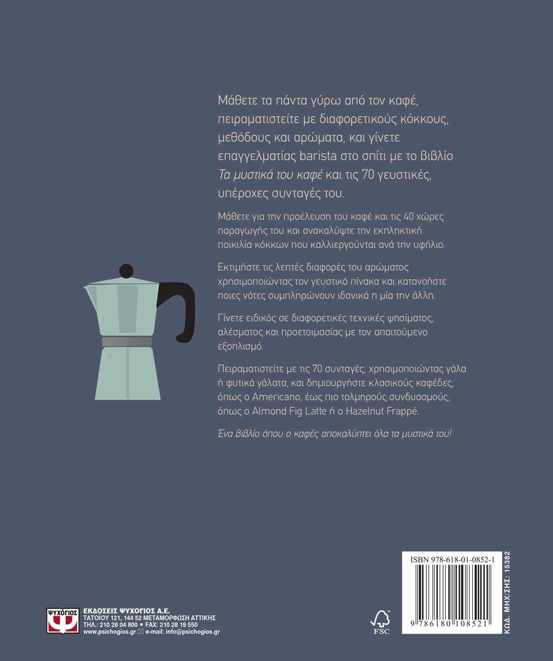 Λατρεύετε τον καφέ; Το βιβλίο ΤΑ ΜΥΣΤΙΚΑ ΤΟΥ ΚΑΦΕ θα σας δώσει όλα όσα χρειάζεστε για να φτιάξετε και να απολαύσετε μια τέλεια κούπα καφέ! Μέσα στις σελίδες του, που περιλαμβάνουν φωτογραφίες και σκίτσα, θα βρείτε περισσότερες από 100 συνταγές από όλο τον κόσμο που θα σας ενθουσιάσουν, μεταξύ των οποίων frappé mocha, flat white κι ένα σωρό άλλες, καθώς και έναν οδηγό για τα πιο σημαντικά είδη καφέ παγκοσμίως, από τους κόκκους Arabica και Robusta μέχρι Typica και Bourbon. Θα μάθετε ακόμη λεπτομέρειες για το πώς μπορείτε να επιλέγετε και να αποθηκεύετε τα «χαρμάνια», να αλέθετε τους κόκκους του καφέ, αλλά και να δημιουργείτε με το γάλα πραγματικά έργα τέχνης σαν αληθινός μπαρίστα. Ένα βιβλίο όπου ο καφές αποκαλύπτει όλα τα μυστικά του.