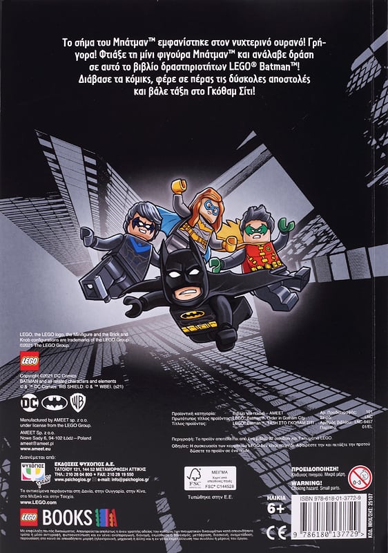 Το σήμα του Μπάτμαν™ εμφανίστηκε στον νυχτερινό ουρανό! Γρήγορα! Φτιάξε τη μίνι φιγούρα Μπάτμαν™ και ανάλαβε δράση σε αυτό το βιβλίο δραστηριοτήτων LEGO® Batman™! Διάβασε τα κόμικς, φέρε σε πέρας τις δύσκολες αποστολές και βάλε τάξη στο Γκόθαμ Σίτι!
