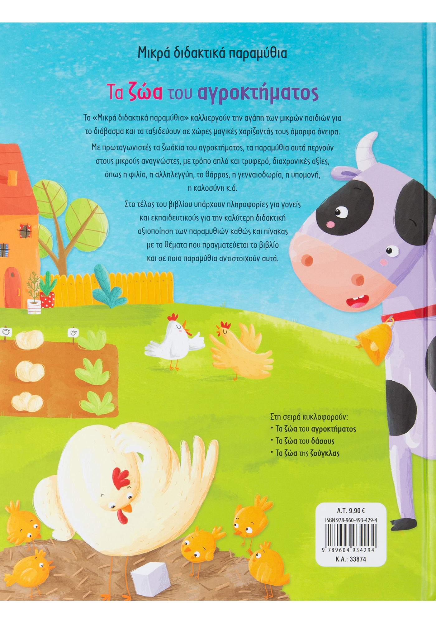 Με πρωταγωνιστές τα ζωάκια του δάσους, της ζούγκλας ή του αγροκτήματος, τα παραμύθια αυτά περνούν στους μικρούς αναγνώστες, με τρόπο απλό και τρυφερό, διαχρονικές αξίες, όπως η φιλία, το θάρρος, η αγάπη για τη φύση, η καλοσύνη, η υπομονή, η γενναιοδωρία κ.α. Τα «Μικρά διδακτικά παραμύθια» καλλιεργούν την αγάπη των μικρών παιδιών για το διάβασμα και τα ταξιδεύουν σε χώρες μαγικές χαρίζοντάς τους όμορφα όνειρα. Στο τέλος του βιβλίου υπάρχουν πληροφορίες για γονείς και εκπαιδευτικούς για την καλύτερη διδακτική αξιοποίηση των παραμυθιών καθώς και πίνακας με τα θέματα που πραγματεύεται το βιβλίο και σε ποια παραμύθια αντιστοιχούν αυτά.