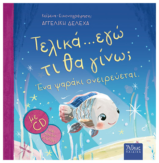 Με ιδιαίτερη χαρά οι Εκδόσεις ΑΘΩΣ/ΠΑΙΔΙΚΑ παρουσιάζουν το ξεχωριστό βιβλίο της Αγγελικής Δελεχά που απευθύνεται στα μικρότερα παιδιά και έχει για ήρωα ενα πανέμορφο ψαρακι. Η γνωστή εικονογράφος, αφού φιλοτέχνησε περισσότερα από ογδόντα βιβλία και η δουλειά της αγαπήθηκε από μικρούς και μεγάλους, για πρώτη φορά εικονογραφεί μια δική της ιστορία με ήρωα το ψαρακι που ονειρεύεται. Το βιβλίο περιέχει ακόμη μια σειρά από χρωμοσελίδες και ενα όμορφο ηχητικό ψηφιακό δίσκο στον οποίο η Αγγελική Δελεχά αφηγείται την ιστορία του βιβλίου. Περιέχει επίσης ενα χαριτωμένο παιδικό τραγούδι που έγραψε η Δήμητρα Σταύρου. Τη μουσική συνέθεσε και ενορχήστρωσε ο Κώστας Χριστοδούλου και τραγουδούν η Λένια Φουτζοπούλου, ο ίδιος ο συνθέτης και οι μικροί Νικόλας και Ισμήνη Αθανασιά.