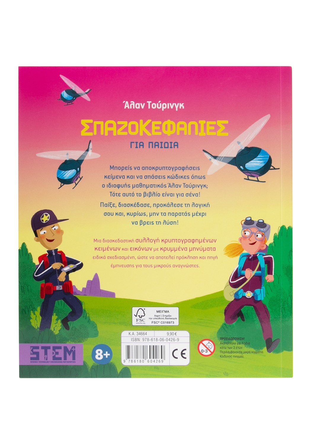 Μπορείς να αποκρυπτογραφήσεις κείμενα και να σπάσεις κώδικες όπως ο ιδιοφυής μαθηματικός Άλαν Τούρινγκ; Τότε αυτό το βιβλίο είναι για σένα! Παίξε, διασκέδασε, προκάλεσε τη λογική σου και, κυρίως, μην τα παρατάς μέχρι να βρεις τη λύση! Μια διασκεδαστική συλλογή κρυπτογραφημένων κειμένων και εικόνων με κρυμμένα μηνύματα ειδικά σχεδιασμένη, ώστε να αποτελεί πρόκληση και πηγή έμπνευσης για τους μικρούς αναγνώστες.
