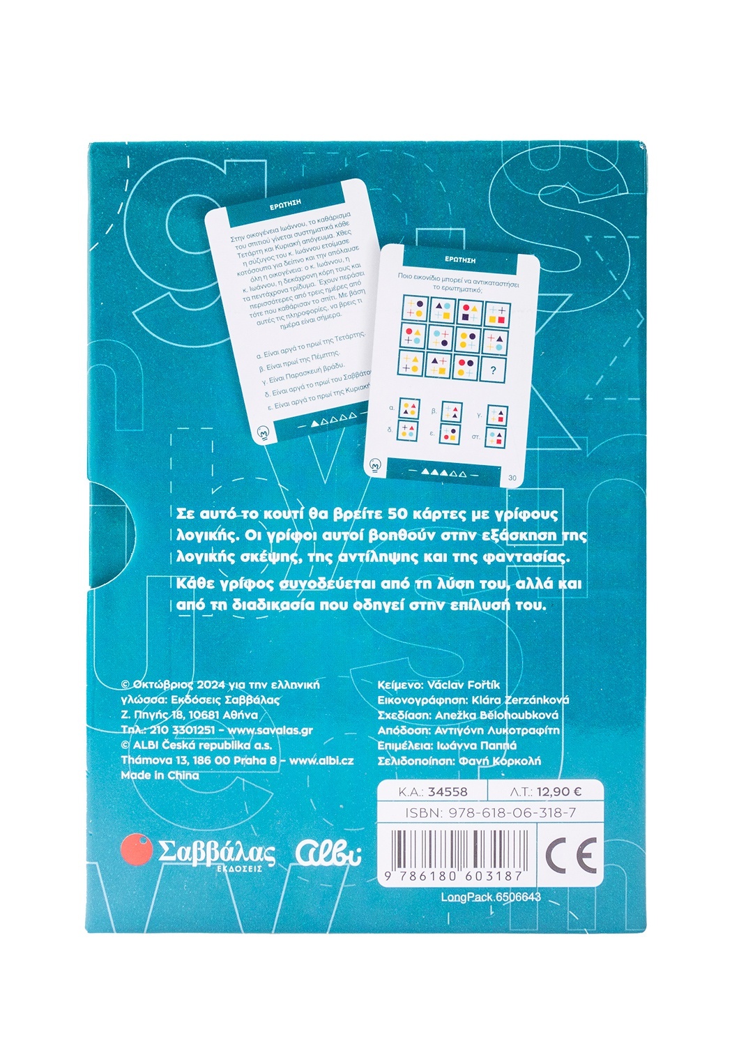 \ \Σε αυτό το κουτί θα βρείτε 50 κάρτες με γρίφους λογικής.