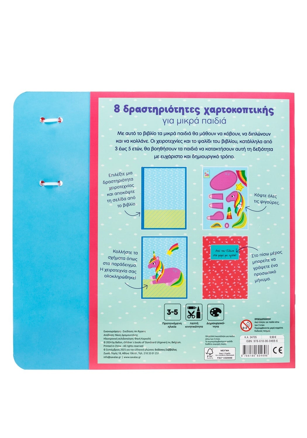Με αυτό το βιβλίο τα μικρά παιδιά θα μάθουν να κόβουν, να διπλώνουν και να κολλάνε. Οι χειροτεχνίες και το ψαλίδι του βιβλίου, κατάλληλα από 3 έως 5 ετών, θα βοηθήσουν τα παιδιά να κατακτήσουν αυτή τη δεξιότητα με ευχάριστο και δημιουργικό τρόπο.