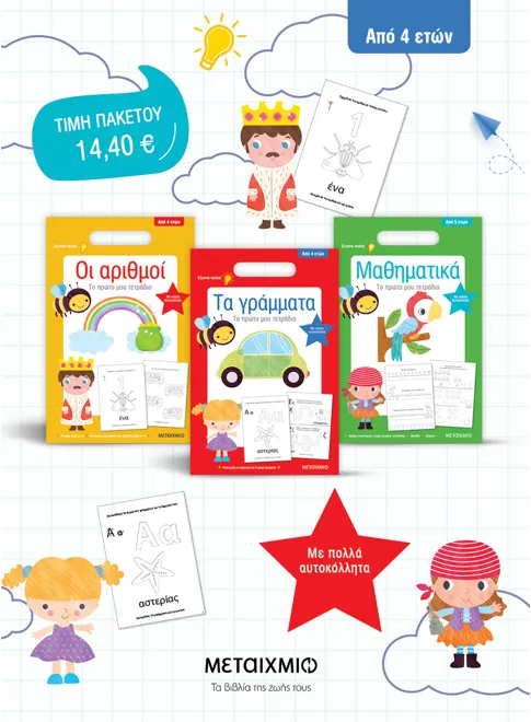 Τρία βιβλία με ευχάριστες δραστηριότητες για την άσκηση βασικών δεξιοτήτων.