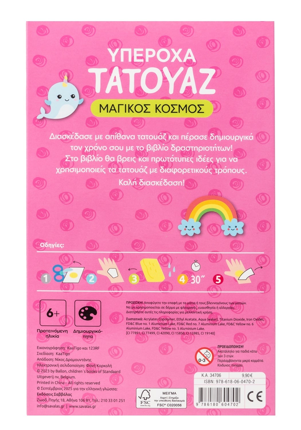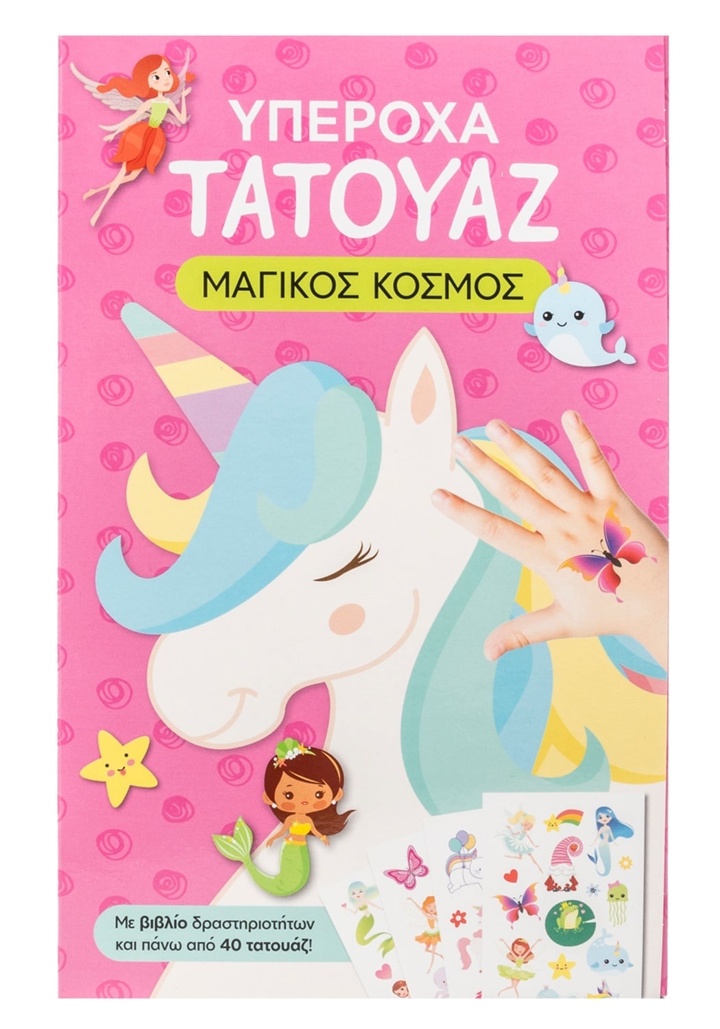 Διασκέδασε με απίθανα τατουάζ και πέρασε δημιουργικά τον χρόνο σου με το βιβλίο δραστηριοτήτων! Στο βιβλίο θα βρεις και πρωτότυπες ιδέες για να χρησιμοποιείς τα τατουάζ με διαφορετικούς τρόπους. Καλή διασκέδαση!