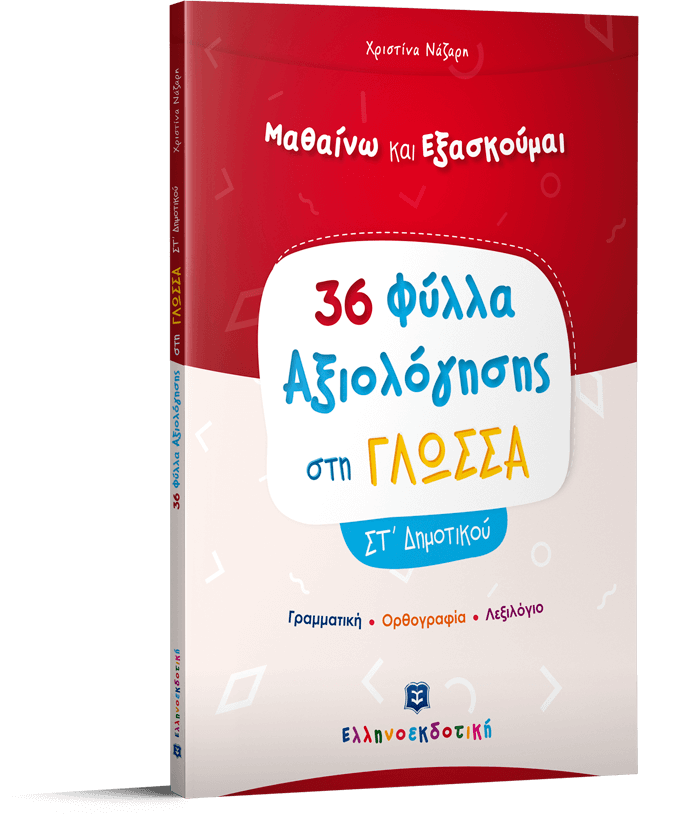 περιλαμβάνει τριάντα έξι (36) Φύλλα Αξιολόγησης με ασκήσεις πάνω στα γραμματικοσυντακτικά φαινόμενα