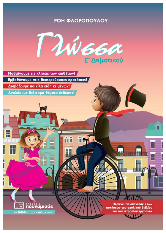 Ένα πρωτότυπο εκπαιδευτικό βιβλίο, που βοηθά τους μαθητές να κατανοήσουν και να εμπεδώσουν με ευχάριστο τρόπο την ύλη της Γλώσσας Ε΄ Δημοτικού.