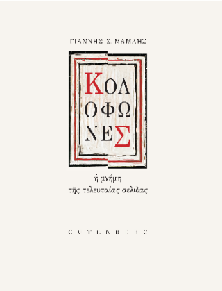 Ο κολοφώνας έχει μακρά ιστορία, που πάει πίσω ως τα μέσα του 15ου αιώνα. Την εποχή που η τυπογραφία ήταν τέχνη αποτελούσε την αποφασιστική ακροτελεύτια πινελιά του αρχιμάστορα τυπογράφου. Εκεί, στην τελευταία σελίδα του βιβλίου, αναφέρονταν τα τεχνικά χαρακτηριστικά της έκδοσης και όλοι όσοι συνεργάστηκαν για να πραγματοποιηθεί. Οι κολοφώνες τυπώνονταν σχηματίζοντας διάφορα εντυπωσιακά και θαυμαστά σχήματα (κλεψύδρες, ανεστραμμένα τρίγωνα, κ.α.), συνοδεύονταν συνήθως και από διάφορα εικαστικά στοιχεία, κάποιο γραμμικό σχέδιο, ένα χαρακτικό, μια ξυλογραφία. Η όλη εικόνα του κολοφώνα ήταν ένα εικαστικό κατόρθωμα, ένα αυθεντικό έργο τέχνης. Σήμερα ο κολοφώνας τείνει να εξαφανιστεί. Για τον Γιάννη Μαμάη όμως, ένα βιβλίο, εκτός από το να έχει σπουδαίο περιεχόμενο πρέπει να είναι και το ίδιο ένα έργο τέχνης και ο κολοφώνας του είναι «μια σπουδαία λεπτομέρεια γιατί στον κολοφώνα σώζεται ο ευεργετικός απόηχος μιας αγαστής συμβιωτικής σχέσης. Οι δεξιοτέχνες δημιουργοί του βιβλίου, αφού έχουν επιτελέσει το έργο τους, εμφανίζονται συγκεντρωμένοι στον «οίκο» του βιβλίου, για να σημάνουν το συνεργατικό πνεύμα, τον συλλογικό καλλιτέχνη που έφερε στον κόσμο ένα κόσμημα –το βιβλίο τους, το βιβλίο του».