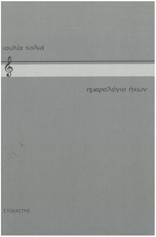 Η Ιουλία Τολιά επιστρέφει με ένα νέο ποιητικό ημερολόγιο, το Ημερολόγιο Ήχων. Αυτή τη φορά, πρωταγωνιστής δεν είναι ένας τρίτος, αλλά το εγώ. Η ποιήτρια εκθέτει τον εαυτό της στον αναγνώστη με τη χαρακτηριστική ελλειπτική της γραφή, που δίνει φωνή-ήχο στη γλώσσα της ψυχής. Μιας ψυχής που ψάχνει το φως στα ξέφωτα της μνήμης, στο παρελθόν, τη μόνη της ιδιοκτησία. Βιώματα, ασυνείδητες – υποσυνείδητες σκέψεις, απωθημένες εικόνες, ήχοι γνώριμοι από το σκοτεινό χθες, μπλέκονται κινηματογραφικά σε μικρά άτιτλα ποιήματα-επεισόδια, που μοιάζουν με σχεδόν άναρθρη κραυγή. Μια κραυγή αγωνίας για το ποιος κινεί τα νήματα, ποιος ορίζει το είναι. Μια κραυγή γεμάτη άκρατο λυρισμό.