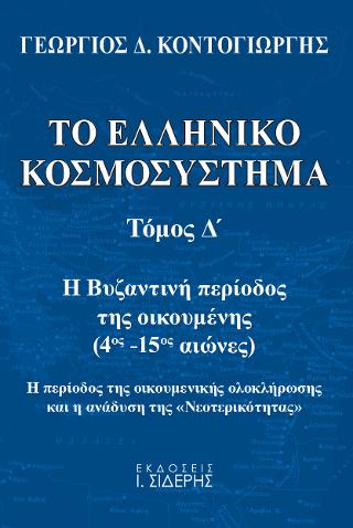 Στον Γ’ τόμο διαπιστώσαμε ήδη ότι στον κόσμο του Βυζαντίου καταγράφονται κοσμοϊστορικές μεταβολές, που αφενός επαναφέρουν την οικουμενική κοσμόπολη στην ομοθετική (ταυτοτική κ.λπ.) γραμμή του ελληνικού κοσμοσυστήματος, αφετέρου κατατείνουν στο να ολοκληρώσουν το ανθρωποκεντρικό υπόβαθρο της οικουμένης σε αντίστιξη με τη φεουδαλική μεθάρμοση της Εσπερίας.