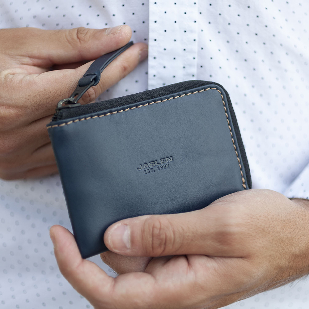 Πορτοφόλι Με Μπρελόκ Ανδρικό JASLEN Δερμάτινο Μπλε 205644-03