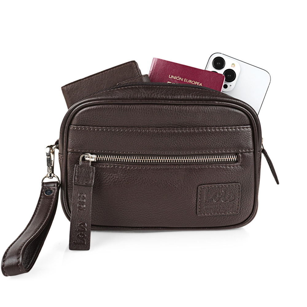 Δερμάτινο ανδρικό τσαντάκι - πορτοφόλι με λουράκι χειρός της σειράς Osborn, της εταιρείας Lois. Ιδανικό για καθημερινή χρήση.