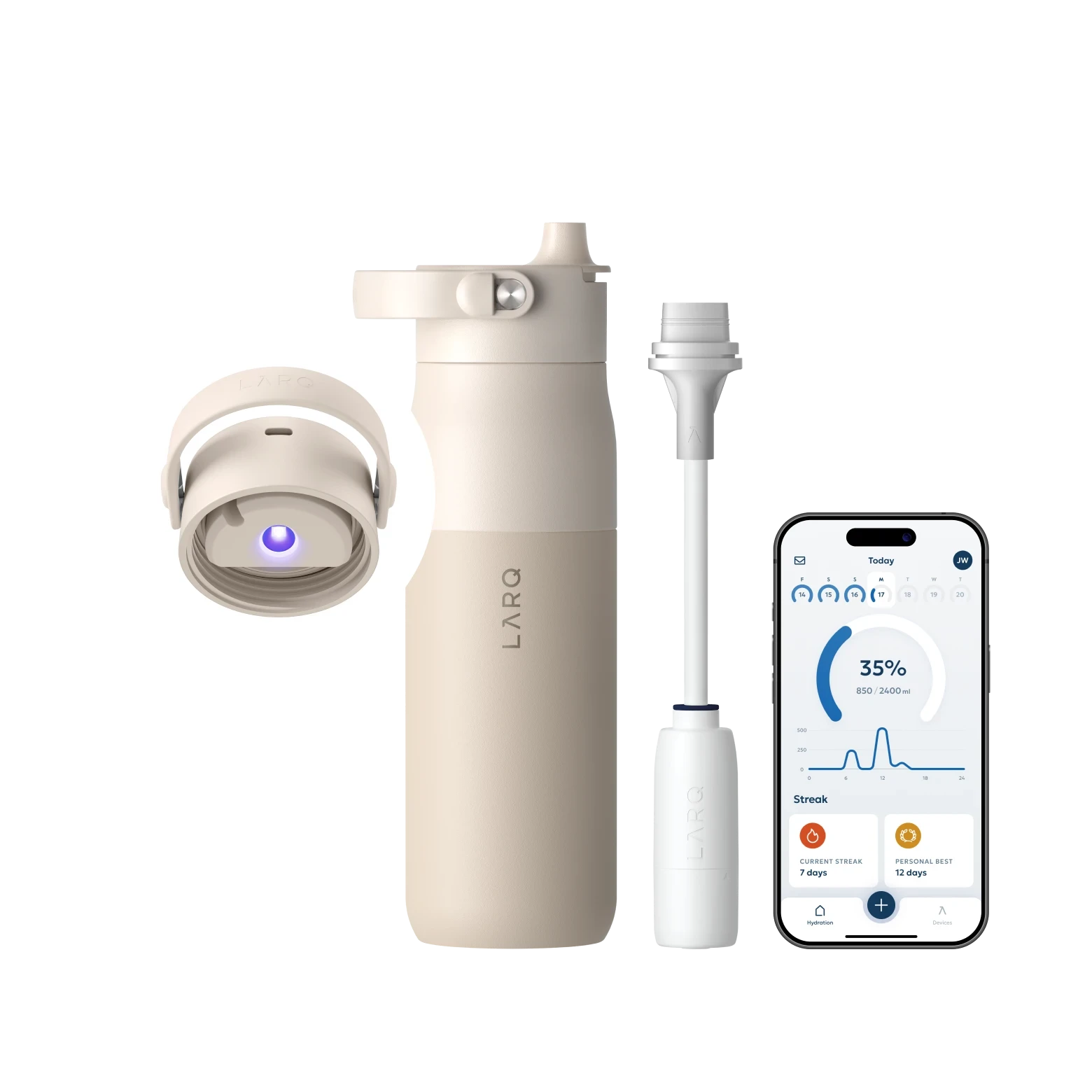 Βελτιώστε την ευεξία σας με το LARQ Bottle PureVis™ 2—το ολοκληρωμένο αυτοκαθαριζόμενο και φιλτραρισμένο μπουκάλι νερού με παρακολούθηση ενυδάτωσης για να σας βοηθήσει να πίνετε περισσότερο. Οι έξυπνοι αισθητήρες στο μπουκάλι παρακολουθούν αυτόματα κάθε γουλιά, ενώ η συνοδευτική εφαρμογή LARQ σας παρέχει πρόσβαση σε πληροφορίες και πρόοδο.