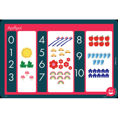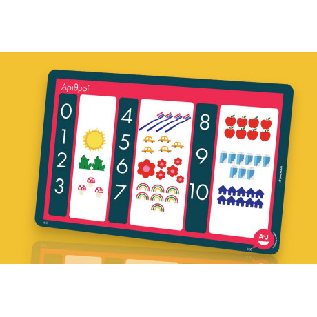 Ένα χαρούμενο σουπλά που εισάγει τα παιδιά προσχολικής ηλικίας στον υπέροχο κόσμο της αριθμητικής, μέσα από ένα πολύχρωμο σχέδιο με διακριτά σχεδιάκια για κάθε αριθμό.