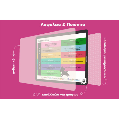 Η ώρα του γεύματος ή/ και της μελέτης μετατρέπεται σε ένα διασκεδαστικό και εκπαιδευτικό ταξίδι στον πλούτο της Ελληνικής γλώσσας, που τρέφει, μέσω ενεργητικής μάθησης, τον πεινασμένο νου των παιδιών μας με γνώση, ενώ παράλληλα γίνεται τέλεια αφορμή για συζήτηση και παιχνίδι με όλη την οικογένεια.