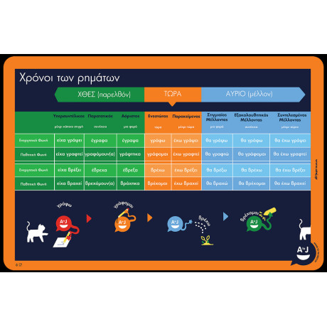 Ένα σουπλά που συγκεντρώνει με τη μορφή χρονοδιαγράμματος τους κανόνες κλίσης ρημάτων και τους παρουσιάζει με κατανοητό, οργανωμένο και παραστατικό τρόπο. Μπορεί να αξιοποιηθεί και ως βοήθημα μελέτης.
