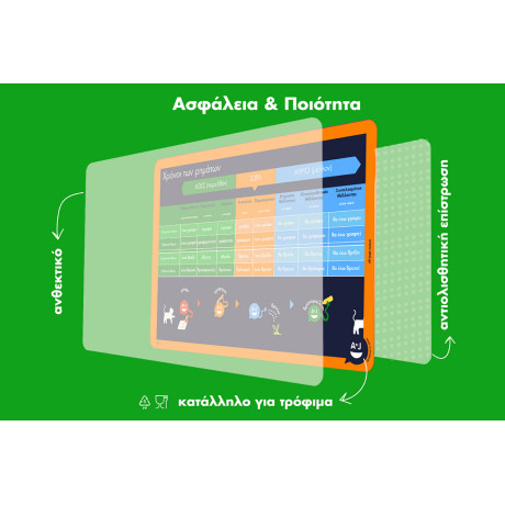 Η ώρα του γεύματος ή/ και της μελέτης συνοδεύεται από ένα διασκεδαστικό και ταυτόχρονα εκπαιδευτικό εργαλείο που βοηθάει τα παιδιά, μέσω ενεργητικής μάθησης, να κατακτήσουν θεμελιώδεις γνώσεις γραμματικής.
