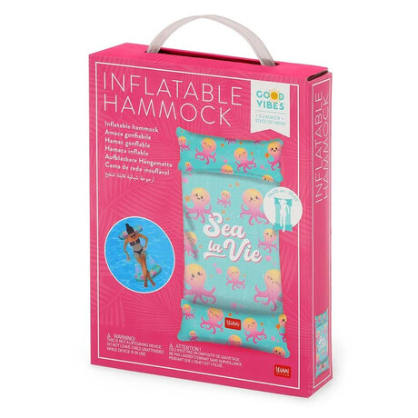 Όταν πρόκειται για χαλάρωση στην παραλία, προτιμάτε την ξαπλώστρα Team ή την αιώρα Team; Η φουσκωτή αιώρα Octopus της Legami θα λύσει τη συζήτηση: ιδανική για έναν υπνάκο κάτω από την ομπρέλα ή για χρήση στην πισίνα ως στρώμα. Διαθέτει πλέγμα για όσους θέλουν να νιώθουν το νερό στο δέρμα τους... και για να παραφράσω τον Leopardi, το να πλέω στη θάλασσα είναι γλυκό για μένα σε αυτή τη θάλασσα!