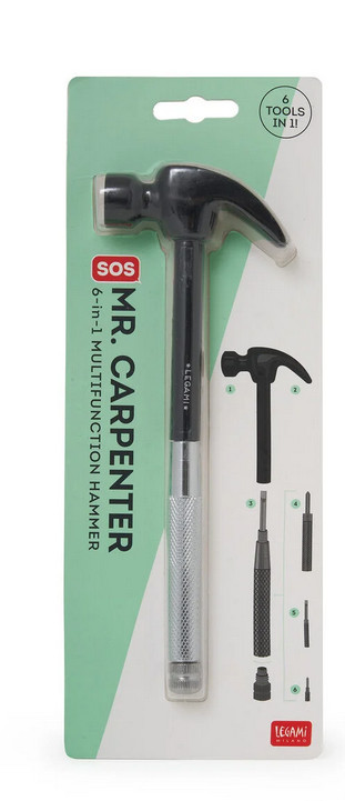Με το Legami SOS Mr. Carpenter Πολυεργαλείο Σφυρί 6-σε-1, έχεις ό,τι χρειάζεσαι σε μία μόνο συσκευή. Πολύ περισσότερα από ένα απλό σφυρί – απλώς ξεβίδωσε τη βάση του και θα βρεις τα παρακάτω εργαλεία για κάθε DIY ανάγκη: