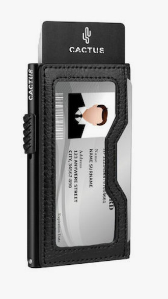• Η καρτοθήκη έχει προστασία RFID/NFC που προστατεύει από ηλεκτρονική υποκλοπή σε περίπτωση επαφής με το πορτοφόλι σας.