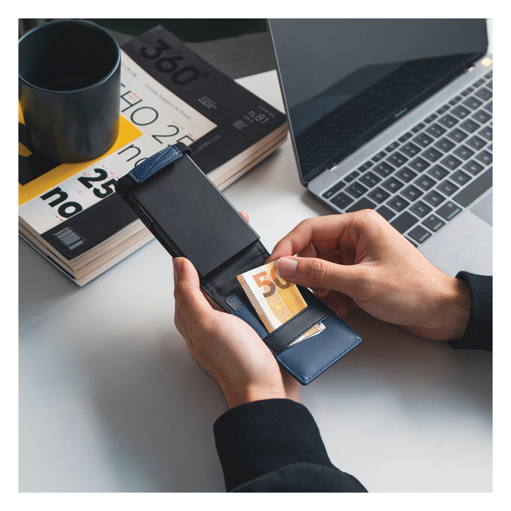 • Η καρτοθήκη έχει προστασία RFID/NFC που προστατεύει από ηλεκτρονική υποκλοπή σε περίπτωση επαφής με το πορτοφόλι σας.