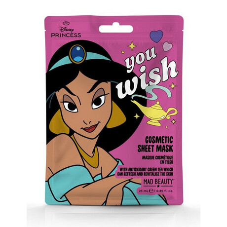 Προετοιμάστε, ενυδατώστε και ανανεώστε το δέρμα σας χαλαρώνοντας, με αυτή τη μάσκα προσώπου σε σχέδιο Disney Princess Jasmine. Η μάσκα αυτή περιέχει τα πρόσθετα οφέλη του ενυδατικού υαλουρονικού οξέος και είναι εμπλουτισμένη με εκχύλισμα πράσινου τσαγιού, γνωστό για τις αντιοξειδωτικές του ιδιότητες που αφήνει το δέρμα απαλό και ενυδατωμένο.