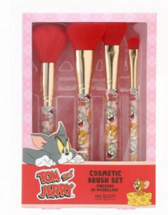 Γίνεται master στο μακιγιάζ εφαρμόζοντας τα τελευταία tricks και trends με τη βασική συλλογή καλλυντικών πινέλων, εμπνευσμένη από τον Tom and Jerry! Αυτό το σετ περιλαμβάνει όλα τα απαραίτητα εργαλεία για το μακιγιάζ σας: πινέλο για πούδρα, για ρουζ, για concealer και για σκιές, τα οποία θα σας χαρίσουν ό,τι απαιτείται για μια άψογη εφαρμογή σε όλο το πρόσωπο. Αναβαθμίζοντας τη ρουτίνα ομορφιάς σας με ακρίβεια και ευκολία, κάθε πινέλο σας βοηθά να δημιουργήσετε την τέλεια εμφάνιση, διαθέτει κόκκινες απαλές συνθετικές τρίχες και παιχνιδιάρικες λαβές με τους αγαπημένους σας ήρωες.