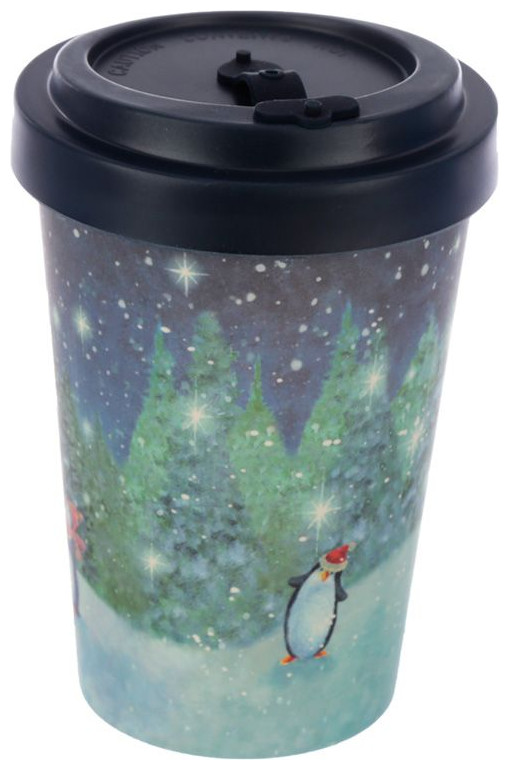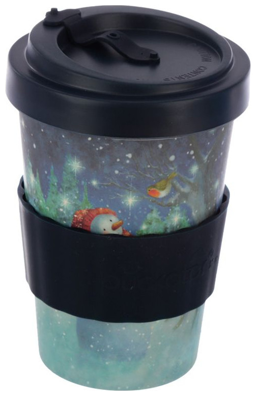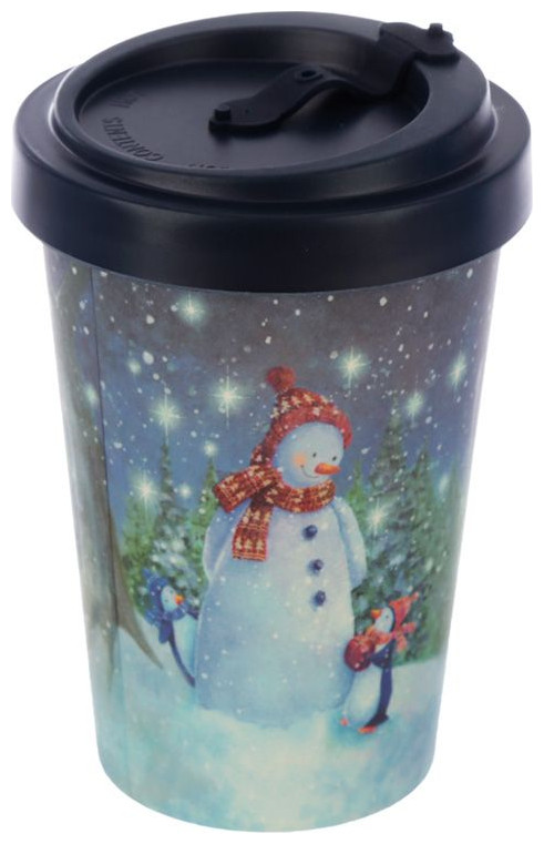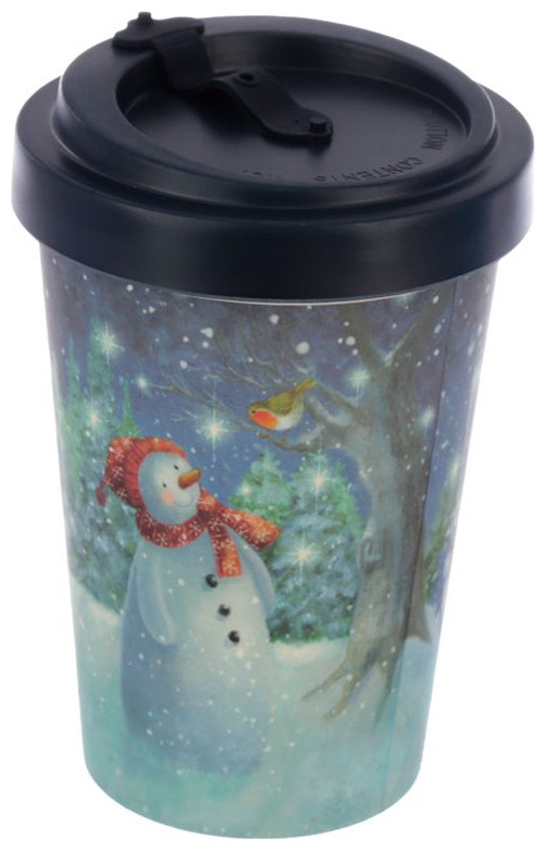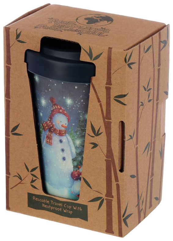 Jan Pashley Christmas Snowman Reusable Screw Top Bamboo Composite Travel Mug