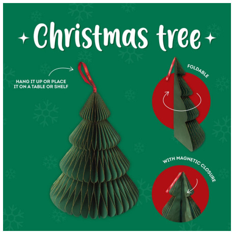 Τα χριστουγεννιάτικα δέντρα είναι όμορφα, αλλά το να τα κατεβάσετε μπορεί να είναι τόσο αγγαρεία. Αυτό το πρόβλημα λύθηκε με το χριστουγεννιάτικο δέντρο της Legami's Foldable Paper. Ανοίγει με μία μόνο κίνηση για να φτιάξει μια όμορφη χριστουγεννιάτικη επίδειξη, με την κυψελοειδή διακόσμηση και το χρυσό γκλίτερ περίγραμμα. Και είναι εξίσου εύκολο να το αφήσετε μακριά, να το αποθηκεύσετε και να το χρησιμοποιήσετε ξανά το επόμενο έτος! Είναι η χριστουγεννιάτικη λύση διακόσμησης που περιμένατε.