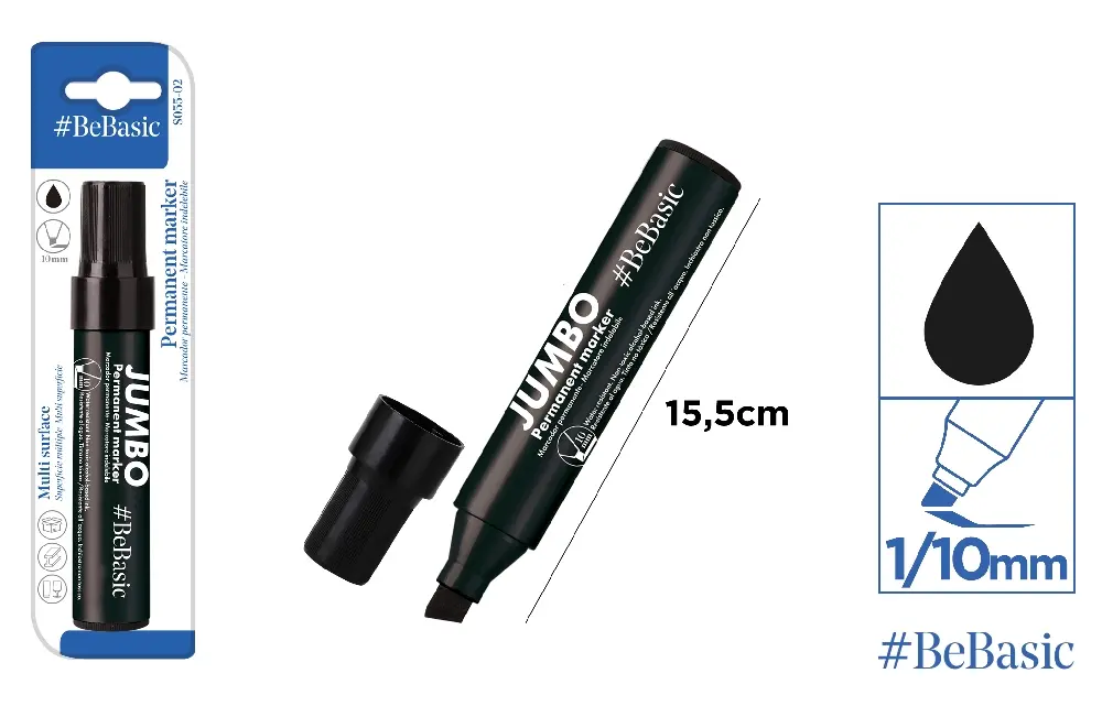 Ανεξίτηλος Μαρκαδόρος BeBasic Γίγας Πλακέ 1,0-10mm Μαύρος S055-02