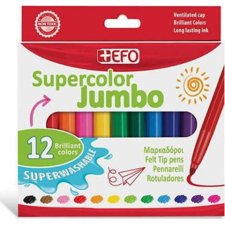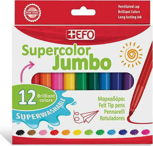 +Efo Supercolor Jumbo Πλενόμενοι Μαρκαδόροι Ζωγραφικής Χονδροί 12 Χρώματα 390212
