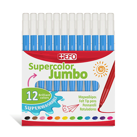 +Efo Supercolor Jumbo Πλενόμενοι Μαρκαδόροι Ζωγραφικής Χονδροί Γαλάζιοι σέτ 12τεμ 390212