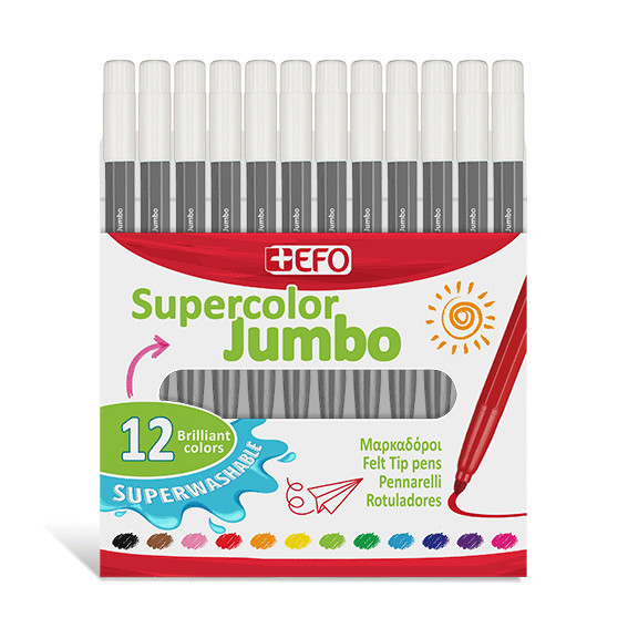 +Efo Supercolor Jumbo Πλενόμενοι Μαρκαδόροι Ζωγραφικής Χονδροί Γκρί σέτ 12τεμ 390302