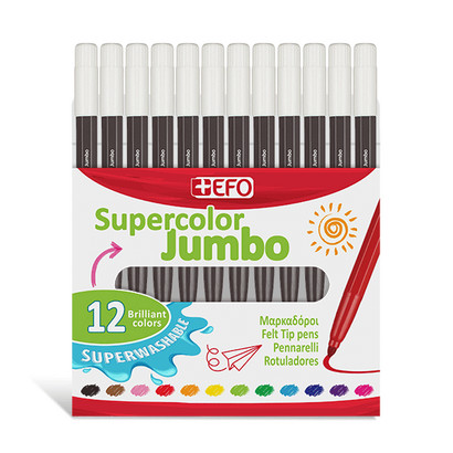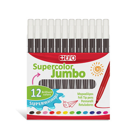 +Efo Supercolor Jumbo Πλενόμενοι Μαρκαδόροι Ζωγραφικής Χονδροί Μαύροι σέτ 12τεμ 390307