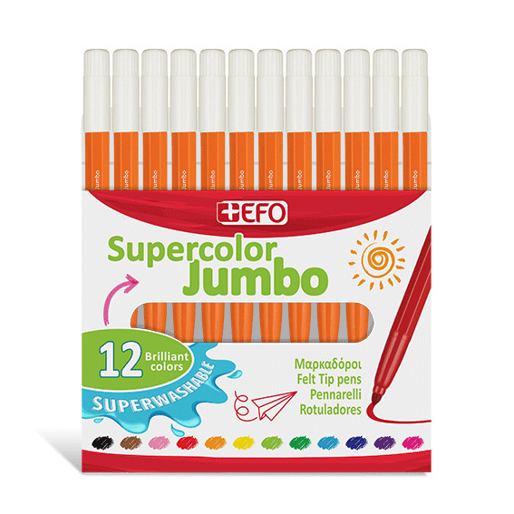 +Efo Supercolor Jumbo Πλενόμενοι Μαρκαδόροι Ζωγραφικής Χονδροί Πορτοκαλί σέτ 12τεμ 390310