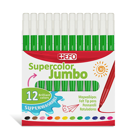 +Efo Supercolor Jumbo Πλενόμενοι Μαρκαδόροι Ζωγραφικής Χονδροί Πράσινοι σέτ 12τεμ 390311