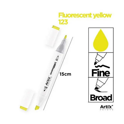 Μαρκαδόρος Ζωγραφικής Σχεδίου Artix Μέ Διπλή Μύτη | Fine & broad | Fluorescent Yellow | PP915-123