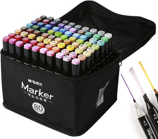 M&G Μαρκαδόροι Ζωγραφικής σχεδίου αλκοόλης Διπλής Μύτης Broad & Fine Σετ 80τμχ APMV1416