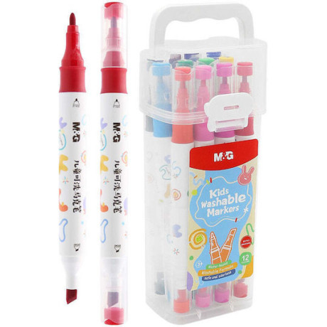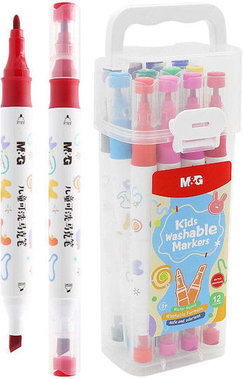 M&G KIDS Μαρκαδόροι Ζωγραφικής παιδικοί νερού WASHABLE Διπλής Μύτης Broad & TIP Σετ 12 χρωμάτων APMT3411