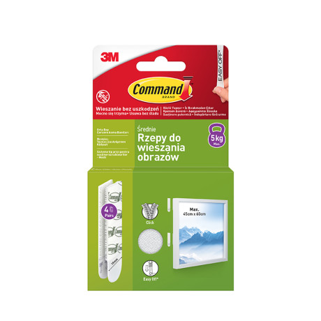 - Λευκές ταινίες μεσαίου μεγέθους για κάδρα που προσφέρουν σταθερό κράτημα (αντέχουν βάρος μέχρι 5kg σε διαστάσεις 45cm *60 cm) και εύκολη αφαίρεση (χωρίς υπολείμματα).