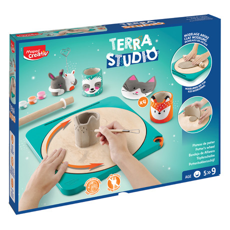 Περιεχόμενα: 1 χειροκίνητος τροχός κεραμικής, 1 κιλός πηλός, 1 κύλινδρος μοντελοποίησης