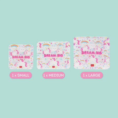 Σετ Επαναχρησιμοποιούμενων συσκευασιών για Σνακ Τροφίμων Legami Set of 3 Snack Bags - Unicorn ZB0001