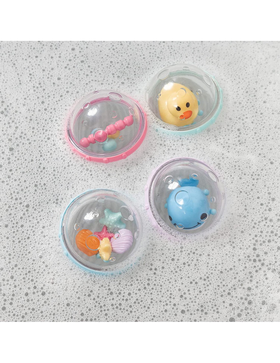 Ξετρελάνετε το μωρό σας με μπουρμπουλήθρες που κουδουνίζουν, χοροπηδούν, περιστρέφονται και λάμπουν. Αυτά τα εργονομικά παιχνίδια είναι ιδανικά για τα πρώτα μπάνια του μωρού σας