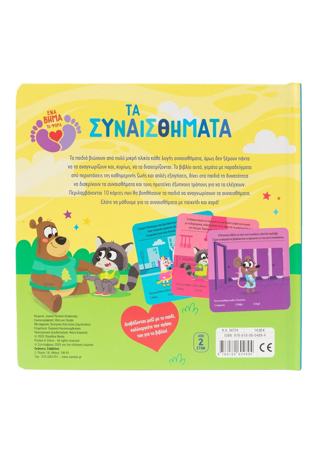 Τα παιδιά βιώνουν από πολύ μικρή ηλικία κάθε λογής συναισθήματα, όμως δεν ξέρουν πάντα να τα αναγνωρίζουν και, κυρίως, να τα διαχειρίζονται. Το βιβλίο αυτό, γεμάτο με παραδείγματα από περιστάσεις της καθημερινής ζωής και απλές εξηγήσεις, δίνει στα παιδιά τη δυνατότητα να διακρίνουν τα συναισθήματα και τους προτείνει έξυπνους τρόπους για να τα ελέγχουν. Περιλαμβάνονται 10 κάρτες που θα βοηθήσουν τα παιδιά να αναγνωρίσουν τα συναισθήματα. Ελάτε να μάθουμε για τα συναισθήματα με παιχνίδι και χαρά!