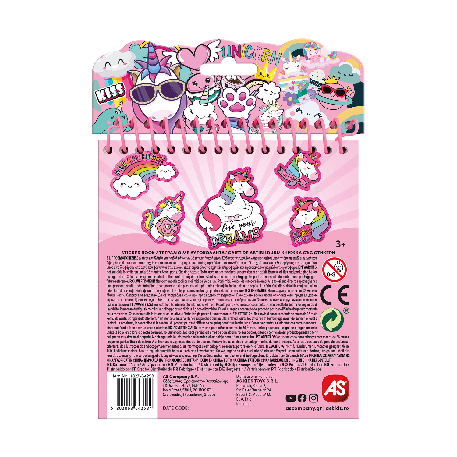 AS Τετράδιο με Αυτοκόλλητα , Assortment 3 Σχέδια για 3+ Ετών