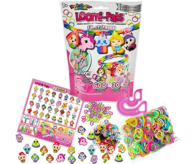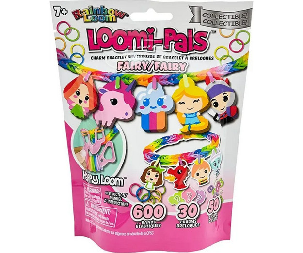 Το συλλεκτικό Rainbow Loom Loomi-Pals Fairy Collectible διαθέτει 600 πολύχρωμες λαστιχένιες κορδέλες, 30 αξιολάτρευτα γούρια με θέμα τις νεράιδες και 50 G-Clips.Τα συλλεκτικά μας Loomi-Pals διαθέτουν: